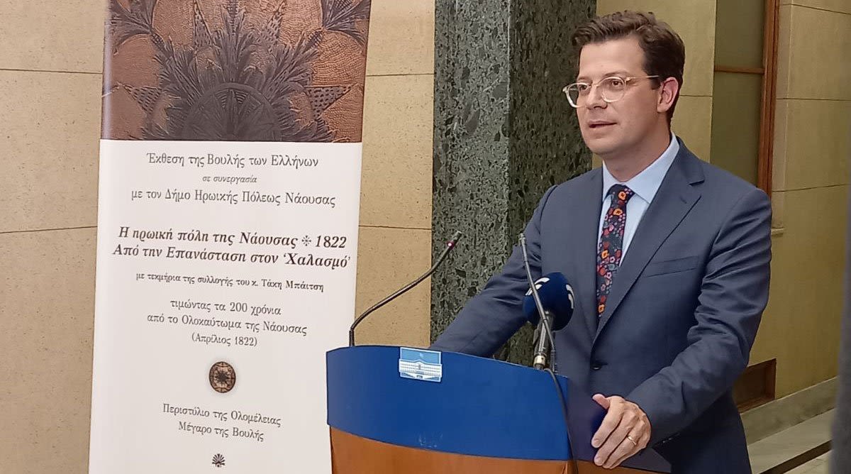 Το χώρο του Ελληνικού Κοινοβουλίου, στο Περιστύλιο, κοσμεί από χθες η έκθεση “Η ηρωική πόλη της Νάουσας 1822: Από την επανάσταση στον Χαλασμό”.