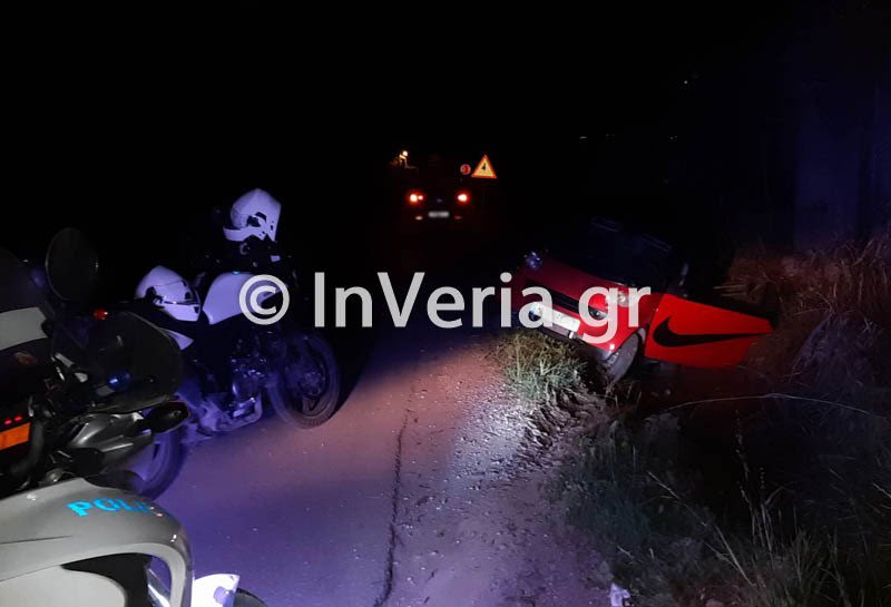 Οι αστυνομικοί της ομάδας ΔΙ.ΑΣ. Βέροιας πέρασαν χειροπέδες στον οδηγό, ο οποίος δεν τραυματίστηκε από την εκτροπή…