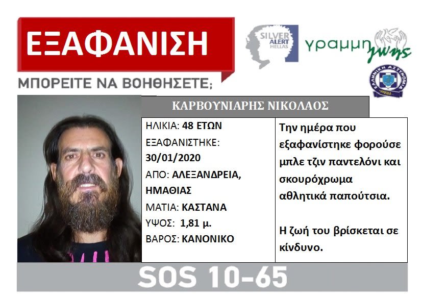 Αίσιο τέλος είχε η περιπέτεια του κ. Νικολάου Καρβουνιάρη ο οποίος αγνοούνταν από τις 30/01 από την Αλεξάνδρεια Ημαθίας.