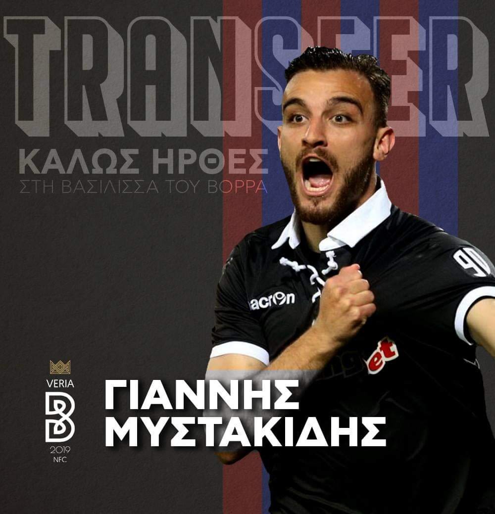 Η ΠΑΕ ΝΠΣ ΒΕΡΟΙΑ ανακοινώνει την συμφωνία με τον ποδοσφαιριστή Γιάννη Μυστακίδη. Ο Μακεδόνας επιθετικός υπέγραψε συμβόλαιο και τη νέα περίοδο θα φορέσει την φανέλα της «Βασίλισσας» του Βορρά.