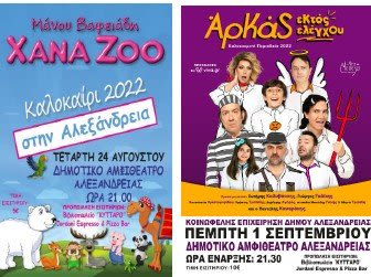 Η Κοινωφελής Επιχείρηση του Δήμου Αλεξάνδρειας ανακοινώνει το Πρόγραμμα θερινών Πολιτιστικών Εκδηλώσεων με τίτλο: “Αλεξάνδρεια – Καλοκαίρι 2022”.