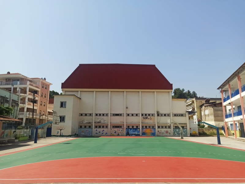 καινούργιο αθλητικό δάπεδο και αντίστοιχος εξοπλισμός (μπασκέτες) έχουν