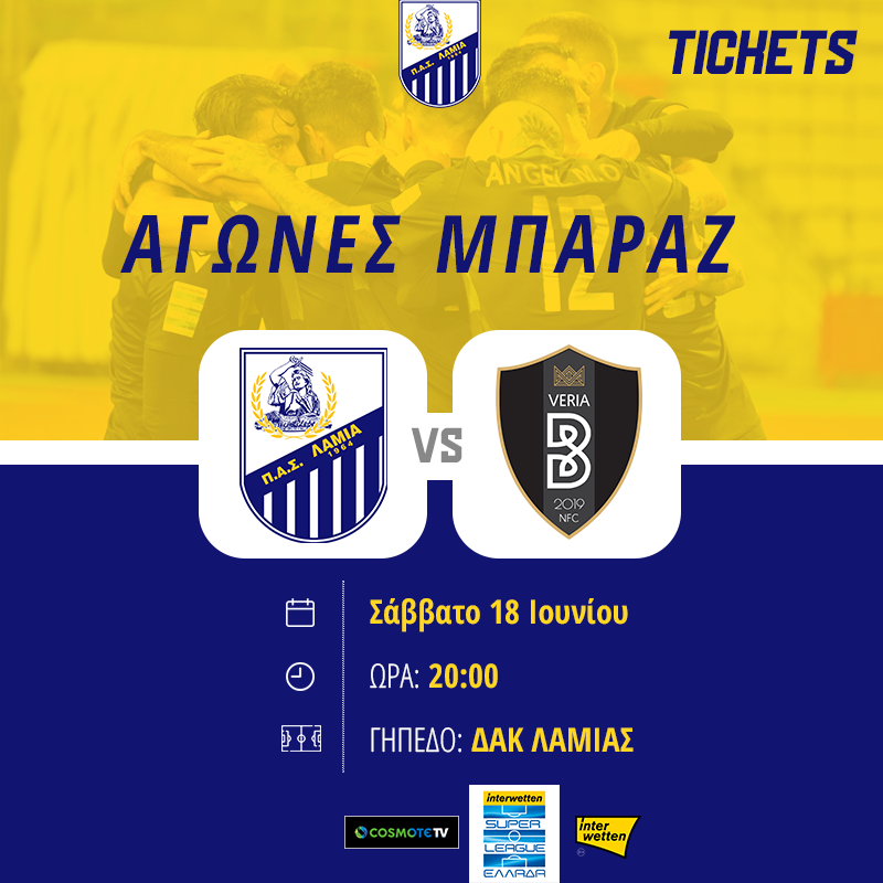 Η ομάδα της Λαμίας εξέδωσε ανακοίνωση σχετικά με τα εισιτήρια του επαναληπτικού αγώνα μπαράζ κόντρα στη Βέροια, που θα διεξαχθεί το Σάββατο 18/6 (20:00).