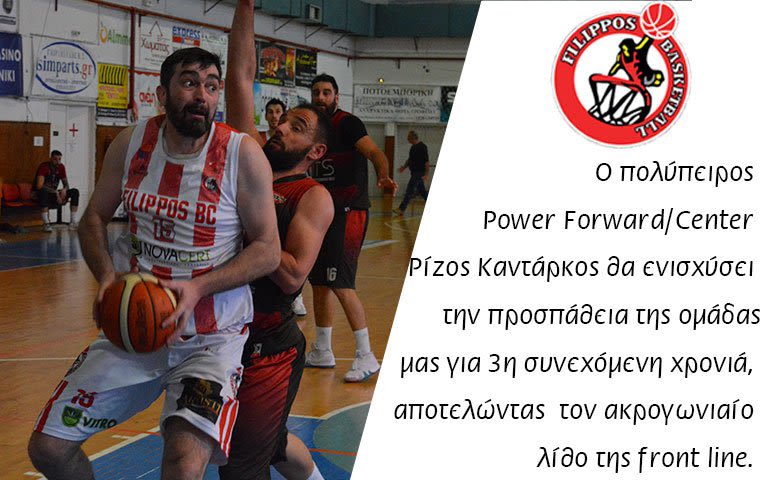 Η ΔΕ του τμήματος καλαθοσφαίρισης του ΑΠΣ Φίλιππος Βέροιαςμε χαρά ανακοινώνει την ανανέωση της συνεργασίας της με τον Ρίζο Καντάρκο για την αγωνιστική σαιζόν 2019-20. Ο πολύπειρος Σερραίος Power Forward/Center (2.04, 36) θα ενισχύσει την προσπάθεια της ομάδας μας για 3η συνεχόμενη χρονιά, αποτελώντας τον ακρογωνιαίο λίθο της front line.