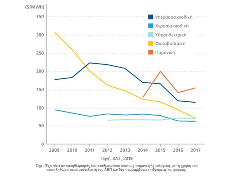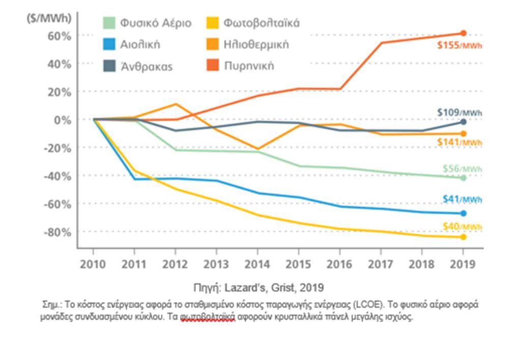 ενέργεια έχουν το χαμηλότερο κόστος ηλεκτροπαραγωγής σε σχέση με όλες τις άλλες