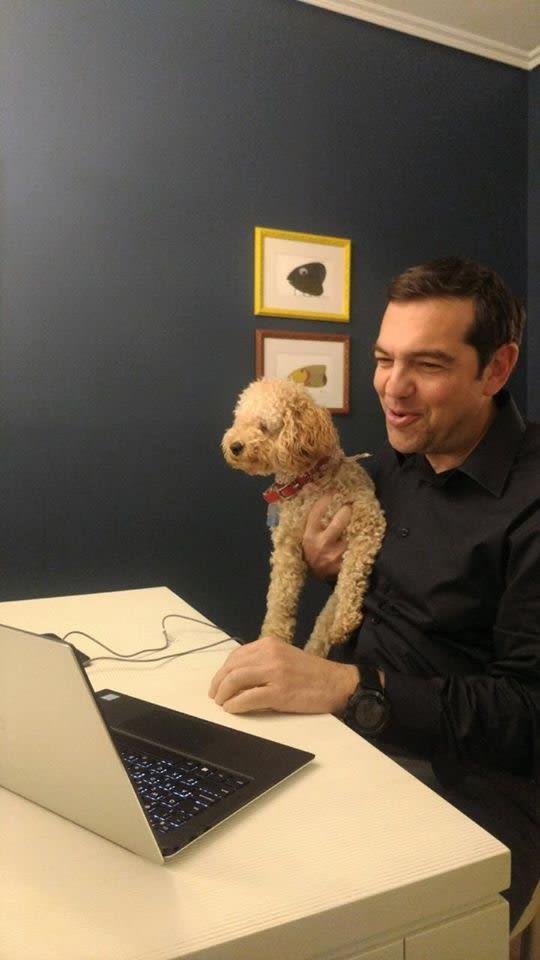Η ανάρτηση συνοδεύεται από τις φωτογραφίες που ο κ. Τσίπρας παίζει με την σκυλίτσα Κάρμεν.