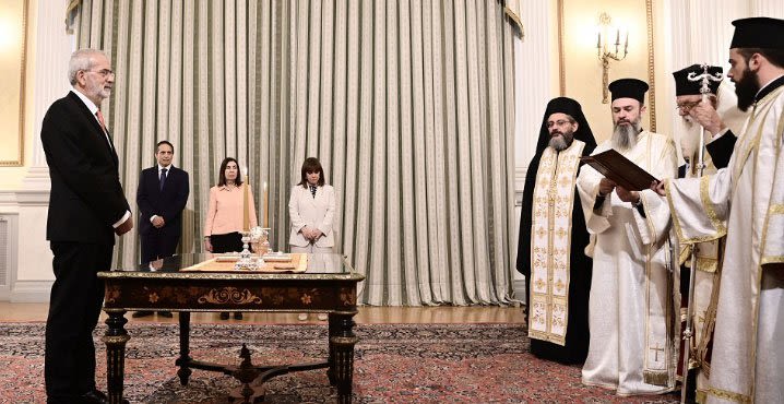 Ενώπιον της Προέδρου της Δημοκρατίας Κατερίνας Σακελλαροπούλου ορκίσθηκε χθες από τον Αρχιεπίσκοπο Αθηνών και Πάσης Ελλάδος Ιερώνυμο, ως πρωθυπουργός, ο Ιωάννης Σαρμάς, Πρόεδρος του Ελεγκτικού Συνεδρίου, ο οποίος θα ηγηθεί της Υπηρεσιακής Κυβέρνησης που θα οδηγήσει τη χώρα στις εκλογές της 25ης Ιουνίου. Ο κ. Σαρμάς μετέβη στο Μέγαρο Μαξίμου, όπου τον περίμενε ο Κυριάκος Μητσοτάκης και ανέλαβε, επισήμως, τα καθήκοντά του. Είχαν έναν σύντομο διάλογο μπροστά στις κάμερες και παρέδωσε στον κ. Σαρμά έναν μπλε φάκελο, ώστε να ενημερωθεί για όλα τα τρέχοντα θέματα αλλά και μια επιστολή, η οποία περιγράφει τις προτεραιότητες της κυβέρνησης, στη λογική του θεσμικού κράτους.