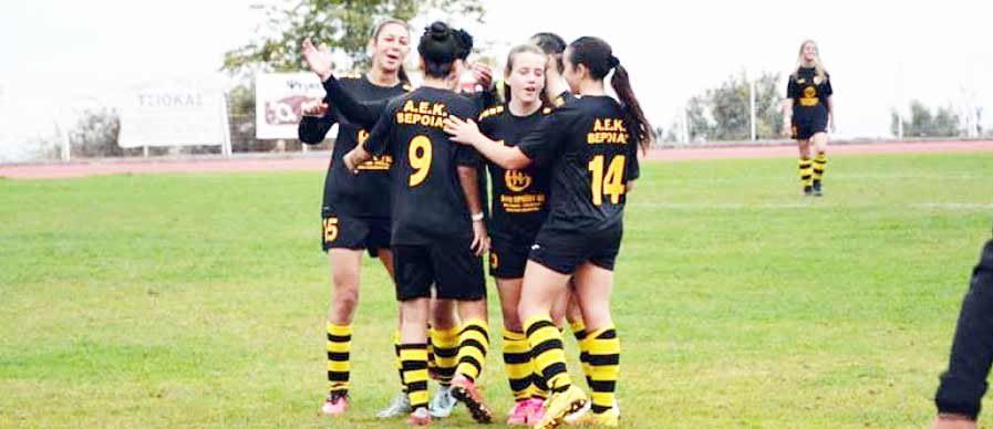 Σπουδαία εκτός έδρας νίκη πέτυχε η ΑΕΚ Βέροιας, στο πλαίσιο της 4ης αγωνιστικής του 3ου ομίλου του πρωταθλήματος ποδοσφαίρου της Γ’ κατηγορίας γυναικών. Οι «κιτρινόμαυρες» νίκησαν στην Πτολεμαΐδα με το ευρύ 5-0 τον τοπικό Ατρόμητο, με δύο γκολ της Πετράκη και της Σταφυλίδου και ένα της Ντούσκα.