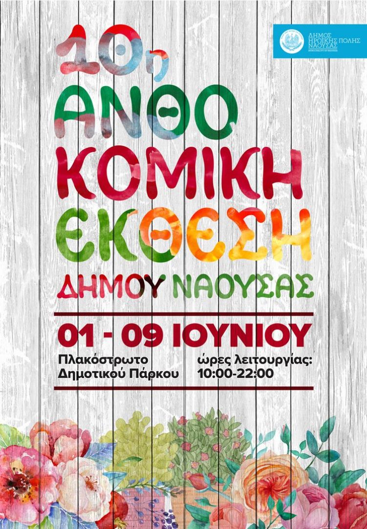 1 Ιουνίου η 10η Ανθοκομική Έκθεση του Δήμου Νάουσας θα διοργανωθεί στο πλακόστρωτο του