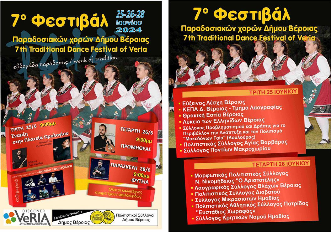 Παραδοσιακών Χορών του Δήμου Βέροιας, το οποίο θα πραγματοποιηθεί για τρεις