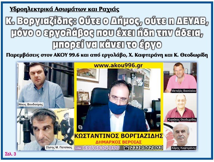 Η ευρεία συζήτηση που ξεκίνησε στην ραδιοφωνική συχνότητα και διαδικτυακή τοποθεσία του ΑΚΟΥ 99.6 για το θέμα που προέκυψε με τα υδροηλεκτρικά έργα στον δήμο Βέροιας και την βροχή σχολίων, ερωτημάτων, αλλά και παρεμβάσεων αναδεικνύει τον «ζωντανό» και εποικοδομητικό ρόλο που μπορούν να παίξουν τα τοπικά ΜΜΕ, όταν λειτουργούν σωστά. Το ανοιχτό βήμα σε όλες τις απόψεις εκτός από υποχρέωση προς την δημοσιογραφική δεοντολογία και την δημοκρατία, έχει και πρακτικό όφελος, αφού μπορεί ο καθένας έχοντας περισσότερα δεδομένα να σχηματίσει ασφαλέστερη άποψη. Χαρακτηριστικό παράδειγμα η «παρέλαση» διαφορετικών απόψεων για το παραπάνω θέμα από μια ραδιοφωνική εκπομπή(ΛΑΪΚΑ&ΑΙΡΕΤΙΚΑ), που σίγουρα ανεβάζει τον πήχη όχι μόνο στην ενημέρωση, αλλά στην πολυφωνία. Όταν μάλιστα κριτές είναι μια μικρή κοινωνία που όλοι γνωριζόμαστε…τότε καλύτερα να μην κρυβόμαστε πίσω από το δάχτυλό μας!