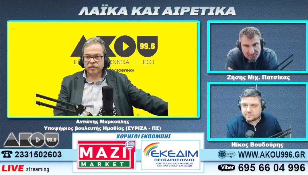 Αντώνης Μαρκούλης στον ΑΚΟΥ 99.6: «Άμεση προτεραιότητά μας η προστασία των δανειοληπτών»-«Ο ΣΥΡΙΖΑ είναι έτοιμος να σχηματίσει μια προοδευτική κυβέρνηση συνεργασίας»