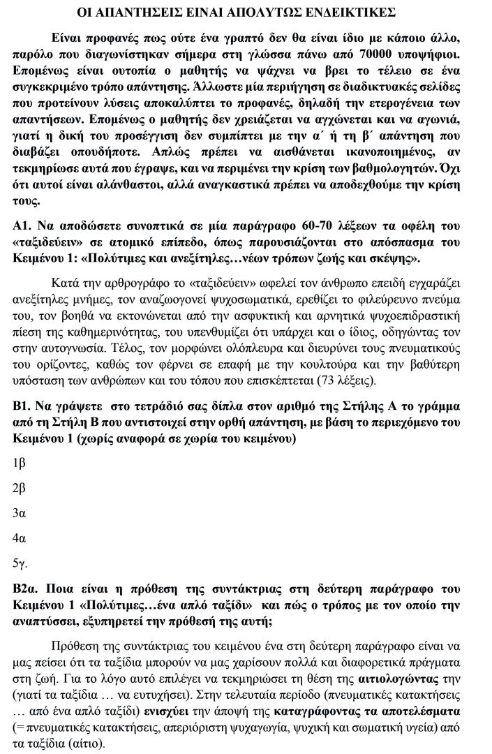 ΑΠΑΝΤΗΣΕΙΣ ΣΤΟ ΜΑΘΗΜΑ ΤΗΣ ΝΕΟΕΛΛΗΝΙΚΗΣ ΓΛΩΣΣΑΣ ΚΑΙ ΛΟΓΟΤΕΧΝΙΑΣ (ΕΚΘΕΣΗ)