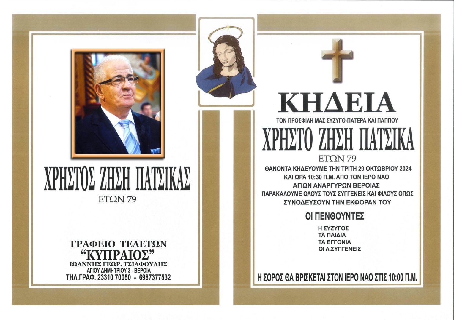 79 ετών ο συντ. δημοσιογράφος και εκδότης Χρήστος Πατσίκας. Ο εκλιπών διετέλεσε