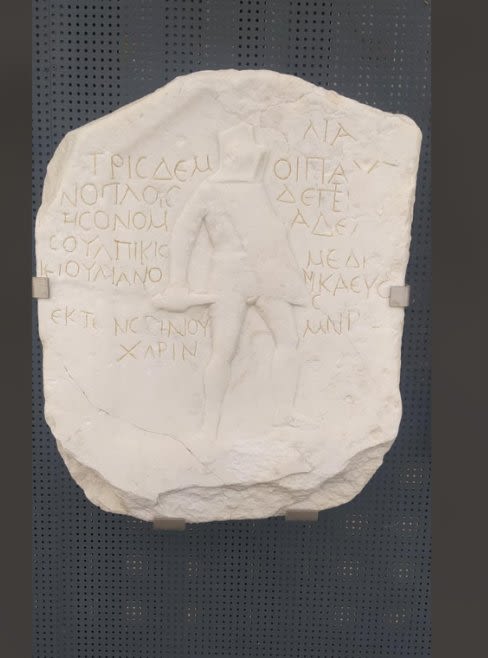 Φωτογραφία: Η επιτύμβια στήλη του μονομάχου Σουλπίκη. Αρχ. Μουσείο Βεροίας, Τοίχος της Μνήμης