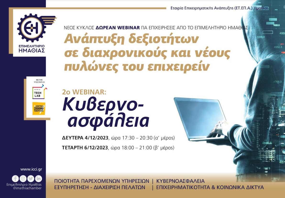 Μπροστά σε αυτούς τους πρωτόγνωρους κινδύνους που βρίσκονται αντιμέτωπες οι επιχειρήσεις, το Επιμελητήριο Ημαθίας και η Εταιρία Επιχειρηματικής Ανάπτυξης (ΕΤ.ΕΠ.Α.) Ημαθίας, σε συνεργασία με την Alpha Plan Consultants και την υποστήριξη του Veria Tech Lab της Δημόσιας Κεντρικής Βιβλιοθήκης Βέροιας διοργανώνουν δωρεάν διαδικτυακό σεμινάριο για την: Κυβερνοασφάλεια με χρήση λογισμικού εξομοίωσης κυβερνοεπιθέσεων και phishing.