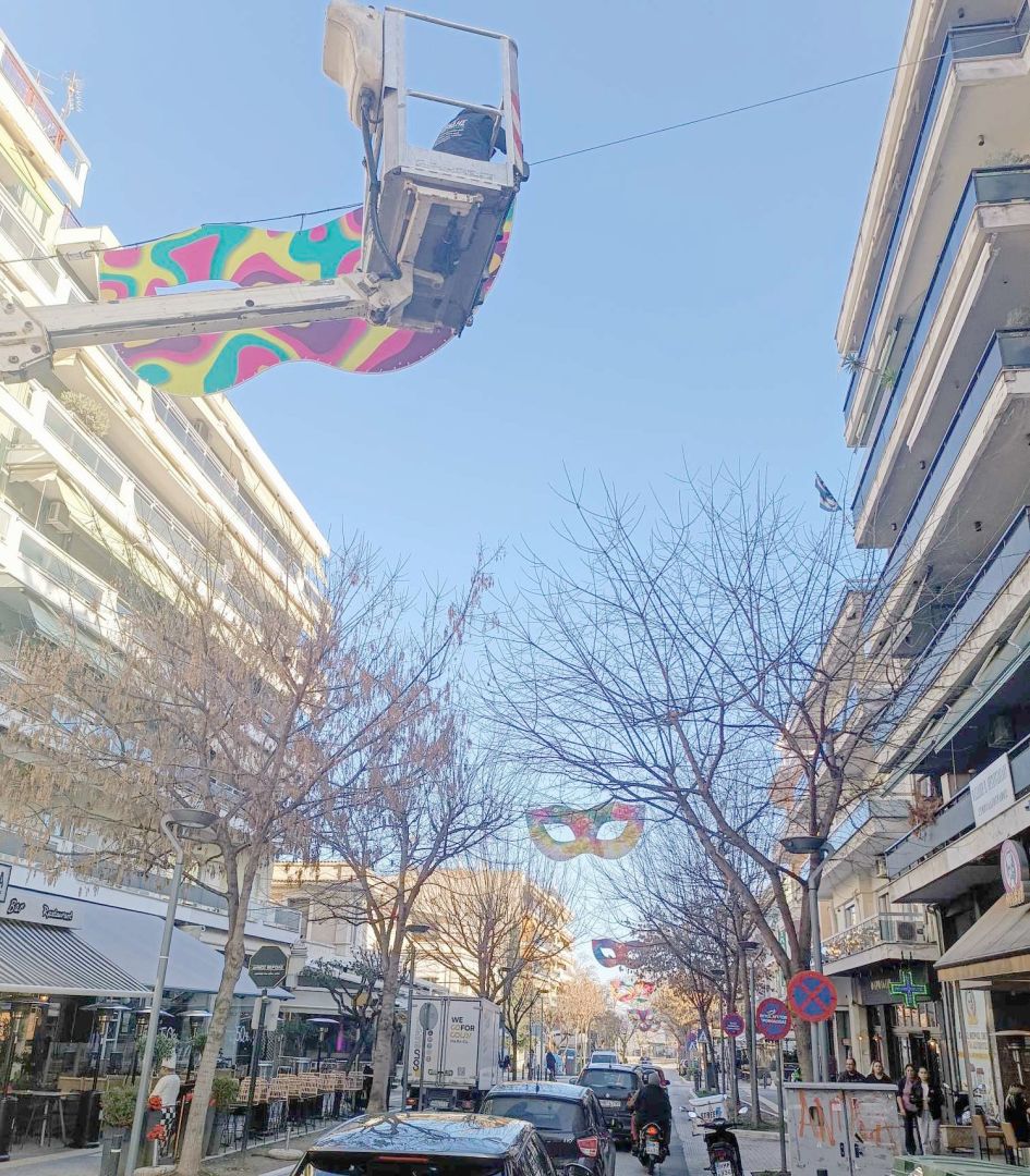 Συνεχίζονται πυρετωδώς οι εργασίες αποκριάτικου στολισμού για το Καρναβάλι της Βέροιας, με την τοποθέτηση πολύχρωμων σημαιών και μεγάλων αποκριάτικων μασκών με φωτισμό led. Ειδικό συνεργείο με γερανοφόρο όχημα το μεσημέρι της Παρασκευής(31/01/2025) ολοκλήρωσε την ανάρτηση των μασκών επί της οδού Εληάς και τις επόμενες ημέρες οι πολύχρωμες μάσκες θα αναρτηθούν και στην οδό Μητροπόλεως.