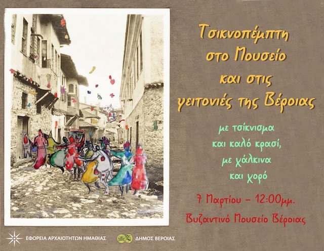 H Εφορεία Αρχαιοτήτων Ημαθίας και ο Δήμος Βέροιας διοργανώνουν και καλούν τον κόσμο σε κοινή γιορτή, την Τσικνοπέμπτη με ψητά και καλό κρασί στο Βυζαντινό Μουσείο Βέροιας (Θωμαϊδου 26) στις 12:00 το μεσημέρι, με κέφι και χαμόγελα!