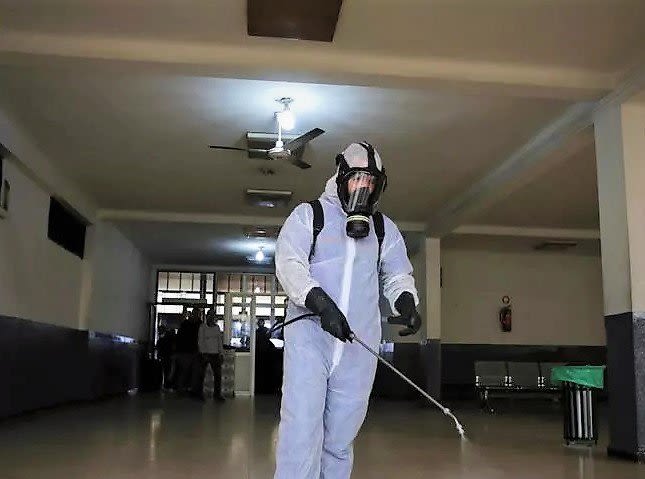 Ο Δήμος Αλεξάνδρειας, έχοντας υπόψη την Πράξη Νομοθετικού Περιεχομένου (Π.Ν.Π.) της 25 Φεβρουαρίου 2020 (ΦΕΚ 42/Α/25-2-2020 «Κατεπείγοντα μέτρα αποφυγής και περιορισμού της διάδοσης του κορωνοϊού»), ανέθεσε το έργο της απολύμανσης όλων των δημοτικών κτηρίων του, σε εξειδικευμένο συνεργείο στις 19 Μαρτίου 2020.