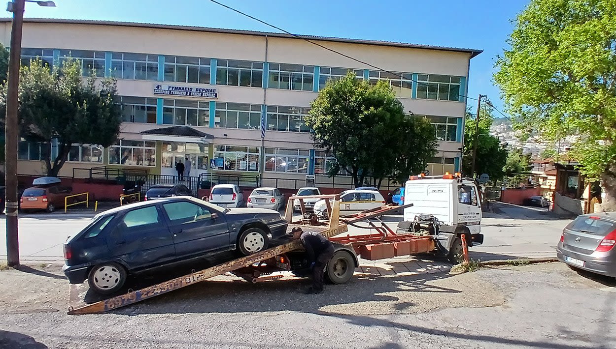Άλλο ένα όχημα εγκαταλελειμμένο απομακρύνθηκε με ενέργειες της Υπηρεσίας της Δημοτικής Αστυνομίας χθες Τετάρτη 24/04/2024 απελευθερώνοντας μία θέση στάθμευσης και διευκολύνοντας την λειτουργία του σχολικού συγκροτήματος και των αθλητικών εγκαταστάσεων της περιοχής.