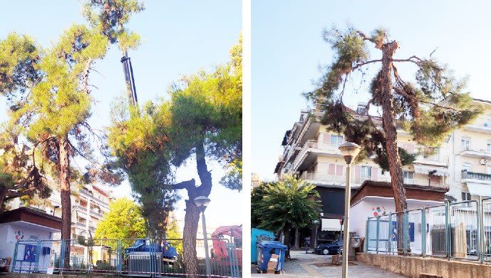 Απομακρύνθηκαν από την αυλή του 6ου δημοτικού τα ξεραμένα και ασθενή δέντρα και κλαδιά
