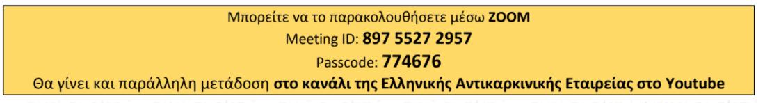 Για τη δια ζώσης παρουσία σας, παρακαλούμε επικοινωνήστε με την Ε.Α.Ε. στο 210.38.26.600 για να κλείσετε θέση. Θα τηρηθεί σειρά προτεραιότητας.