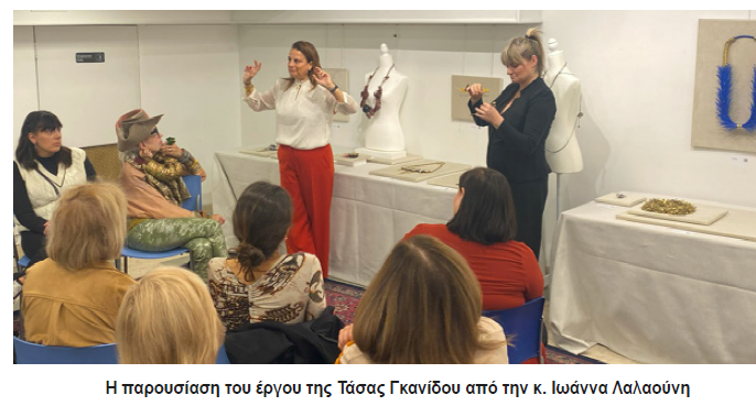 Κατά την διάρκεια ειδικής εκδήλωσης στην αίθουσα που παρουσιάστηκε η έκθεση του Μουσείου Κοσμήματος, τους δημιουργούς και τους επισκέπτες καλωσόρισε και ξενάγησε η Γενική Διευθύντρια του Μουσείου κ. Ιωάννα Λαλαούνη με την συνοδεία της Διοικητικής Διευθύντριας κ. Ελένης Μάστορα.