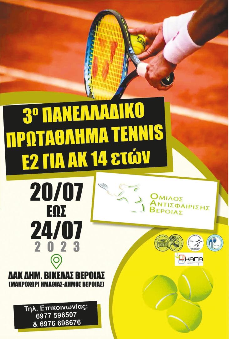 Αρχίζει σήμερα Πέμπτη 20 Ιουλίου το ΠΑΝΕΛΛΑΔΙΚΟ ΠΡΩΤΑΘΛΗΜΑ tennis για Αγόρια και Κορίτσια κάτω των 14 ετών
