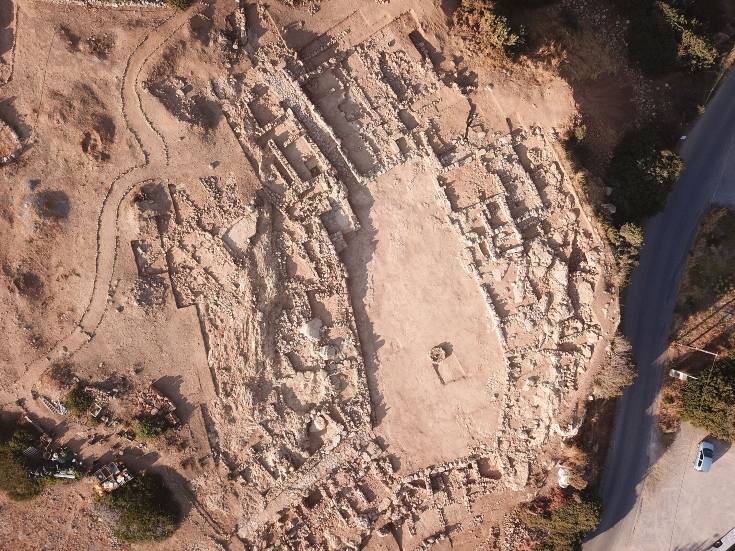 «Περαιτέρω ανασκαφή του μνημειακού συγκροτήματος με αυλή αποκάλυψε ένα δάπεδο επιστρωμένο με εξαιρετικής ποιότητας κονίαμα, κοσμημένο με στικτό διάκοσμο και έναν κομψά κτισμένο πήλινο αγωγό για την απορροή των υδάτων από τη μήκους 33 μέτρων κεντρική αυλή προς την ανατολική κλιτύ», προστίθεται στην ανακοίνωση.