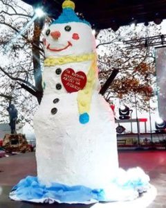 Έναν μεγάλο χιονάνθρωπο-τούρτα, με 180 κιλά κέικ, μαρμελάδα και 40 κιλά