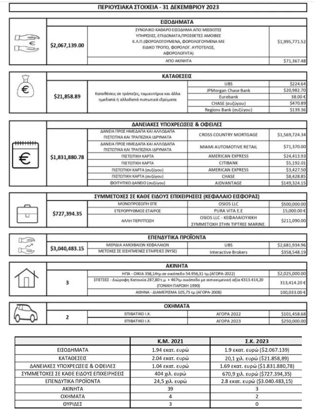 τα περιουσιακά στοιχεία του, κάνοντας σύγκριση με εκείνα του Κυριάκου