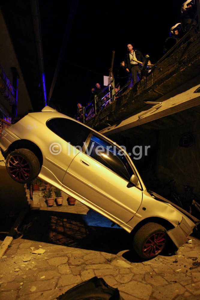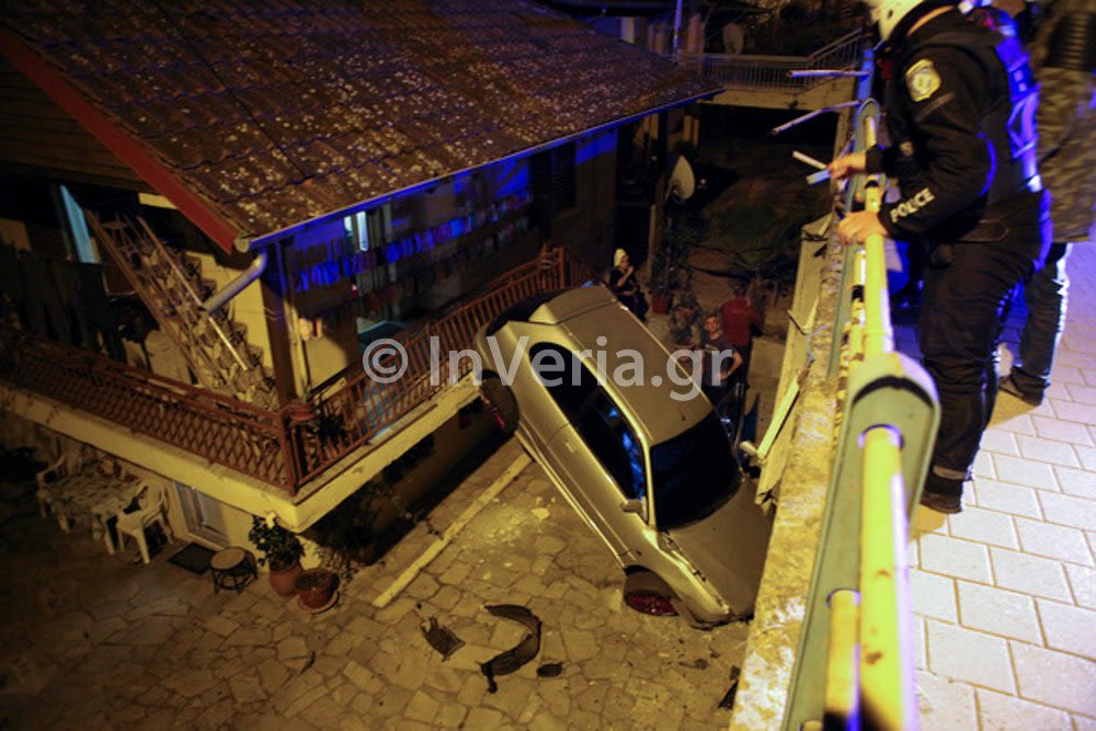 Αυτοκίνητο που οδηγούσε νεαρός άντρας εξετράπη της πορείας του και έπεσε σε μπαλκόνι και την αυλή οικίας που ήταν αρκετά μέτρα κάτω από το ύψος του δρόμου, ευτυχώς όμως ο οδηγός δεν τραυματίστηκε σοβαρά, όπως αναφέρουν οι πληροφορίες του InVeria.gr.