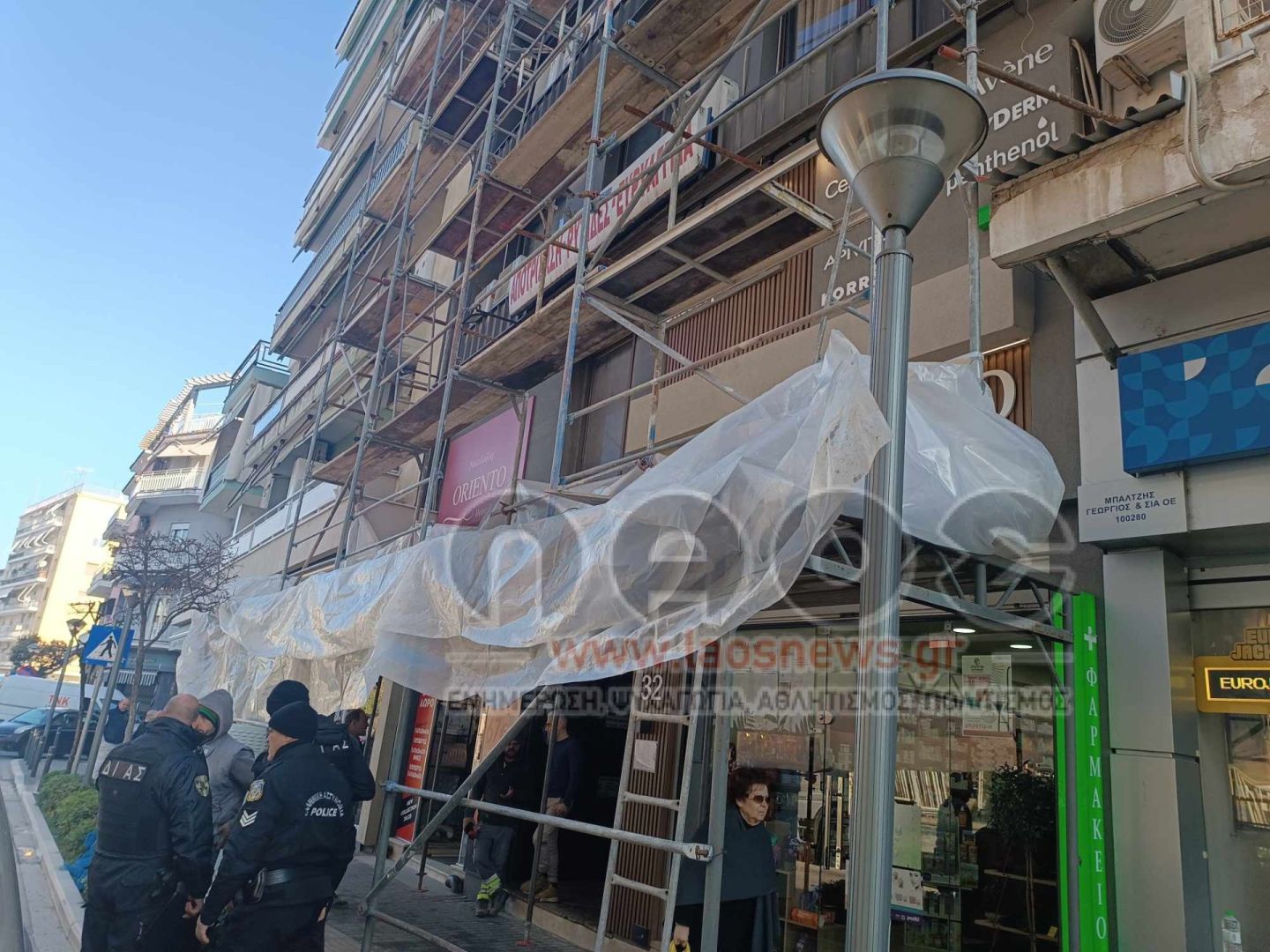 τοποθετηθεί για εξωτερικές εργασίες σε πολυκατοικία στο ύψος της Βενιζέλου 32, ευτυχώς