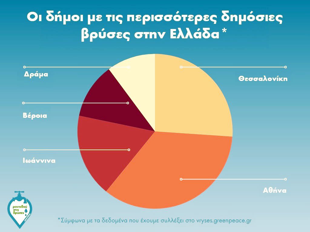 Πάνω από 500 δημόσιες βρύσες έχει καταγράψει στην Ελλάδα η Greenpeace και τις καταχώρησε στον χάρτη της σύμφωνα με τον οποίο η Βόρεια Ελλάδα έχει το προβάδισμα. Μάλιστα η Βέροια βρίσκεται μεταξύ των δήμων με τις περισσότερες βρύσες.