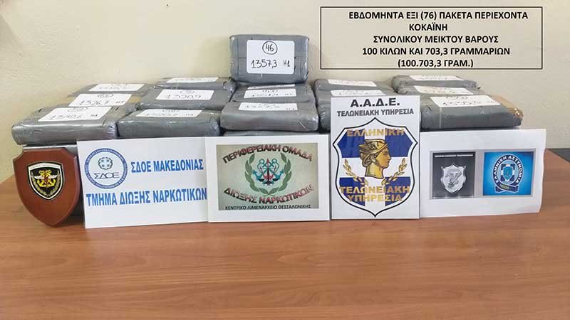Όπως αναφέρει το ΑΠΕ-ΜΠΕ, τα ναρκωτικά, η αξία των οποίων υπολογίζεται σε δεκάδες εκατομμύρια ευρώ, ήταν κρυμμένα σε κοντέινερ με μπανάνες, που είχαν φτάσει τα προηγούμενα εικοσιτετράωρα από το Εκουαδόρ στο λιμάνι της Θεσσαλονίκης.