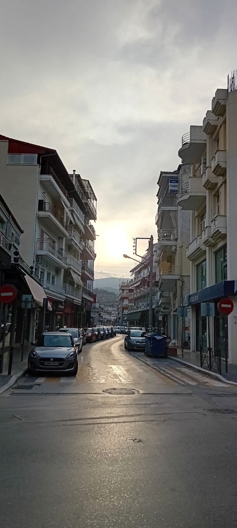 Στις φωτογραφίες, ο μόνος πράσινος δρόμος πόλης μας, κι αυτός.. μισός: το δεντροφυτεμένο ανατολικό τμήμα της Μεγάλου Αλεξάνδρου, και το δυτικό τμήμα του ίδιου δρόμου, το απόλυτο τσιμέντο.