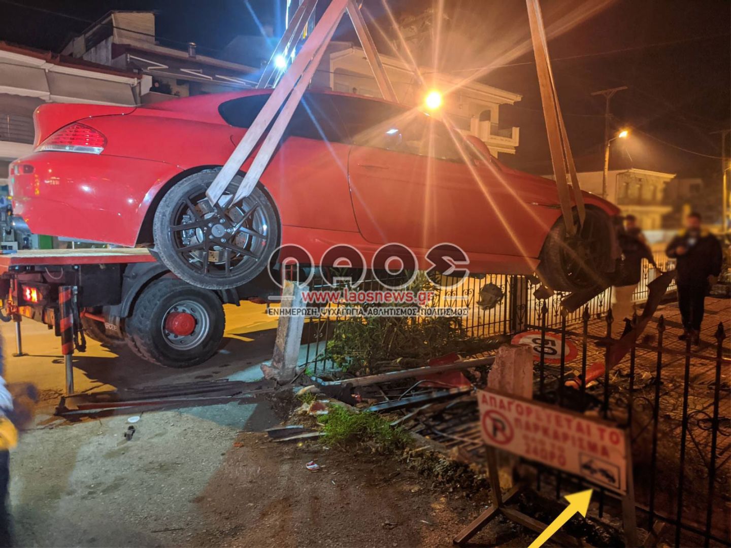 Εκτός από την Αστυνομία που κατέφθασε στο σημείο, χρειάστηκε γερανός για να απομακρύνει το αυτοκίνητο.