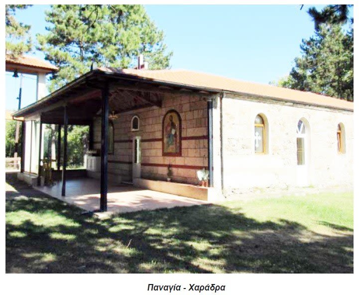 -Χαράδρα Ο ναός που πανηγυρίζει τον Δεκαπενταύγουστο και είναι αφιερωμένος στην Κοίμηση της Θεοτόκου κάηκε κατά το παρελθόν ανήμερα της εορτής της Αγίας Παρασκευής αλλά ξανακτίσθηκε.