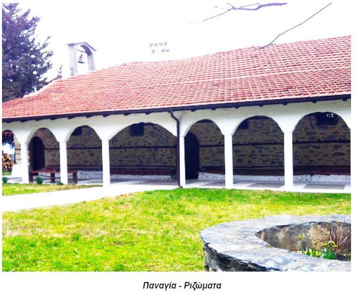 -Ριζώματα Η εκκλησία της Κοίμησης της Θεοτόκου που βρίσκεται στα «Κοιμητήρια» του οικισμού χρονολογείται από το 1467. Έχει κριθεί βυζαντινό μνημείο και στο ναό υπάρχουν θαυμάσιες εικόνες.