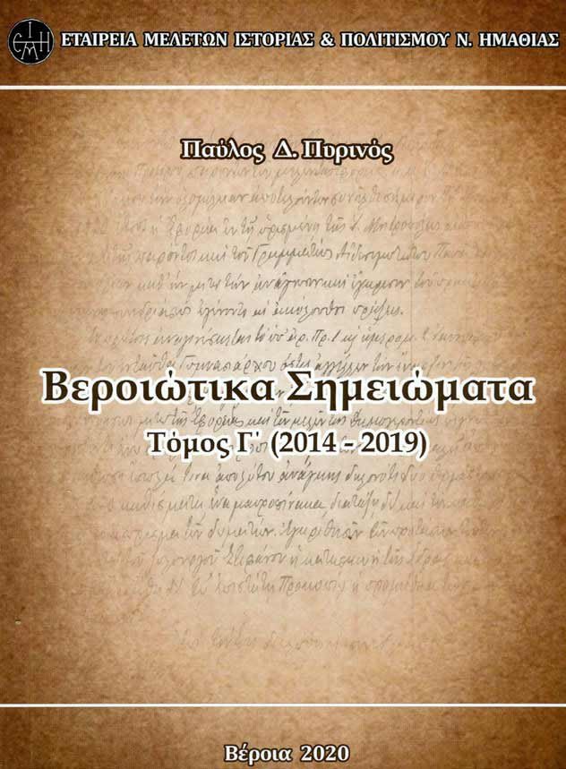 Στην περίπτωσή μας, για να μη χαθούν τα δημοσιεύματά του στις διάφορες εφημερίδες, ο ενεργός πολίτης, ο «οφφικιούχος άρχοντας διδάσκαλος» κ. Παύλος Πυρινός, «εγέννησε και το τρίτο του παιδί». Τα «Βεροιώτικα Σημειώματα» Γ΄ Τόμος (2014-2019).