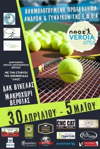 Την Τρίτη 30 Απριλίου ξεκινά στα γήπεδα τένις του ΔΑΚ Μακροχωρίου Δ. Βικέλας το βαθμολογούμενο τουρνουά τένις ανδρών-γυναικών της ΕΦΟΑ και.