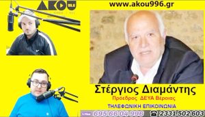 Ο πρόεδρος της ΔΕΥΑ Βέροιας Στέργιος Διαμάντης παραχώρησε την Κυριακή 28 Φεβρουαρίου μια πολύ ενδιαφέρουσα συνέντευξη στην ραδιοφωνική…