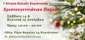 Σάββατο 14 και Κυριακή 15 Δεκέμβρη, 10.00 – 20.00, Χώρος Τέχνης “Κυριώτισσας Ουτοπία” (Ρήγα Φεραίου 25, Κυριώτισσα).Μεγάλη ποικιλία απο…