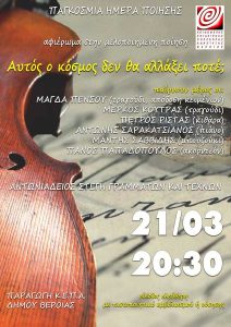 Η ΚΕΠΑ του Δήμου Βέροιας, ξεκινά τις καλλιτεχνικές της δράσεις με ένα αφιέρωμα, στην Μελοποιημένη ποίηση.Η Εταιρεία Συγγραφέων θέσπισε την.