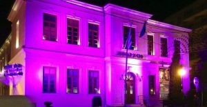 Ροζ φωτίστηκε το βράδυ της Παρασκευής η πρόσοψη του δημαρχείου Βέροιας, στο πλαίσιο των εκδηλώσεων του μήνα πρόληψης για τον καρκίνου το μα