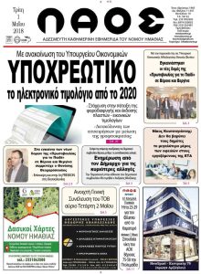 Πρωτοσέλιδο 25 ΜΑΐΟΥ 2018