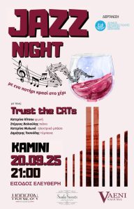 O Δήμος Ηρωικής Πόλης Νάουσας διοργανώνει το Σάββατο 20 Σεπτεμβρίου και ώρα 21:00 μουσική βραδιά jazz στην αίθουσα «Καμίνι» (Πολυχώρος…
