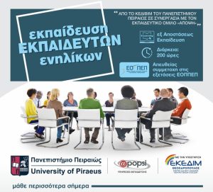 ΕΚΠΑΙΔΕΥΣΗ ΕΚΠΑΙΔΕΥΤΩΝ ΕΝΗΛΙΚΩΝ ΑΠΟ ΤΟ ΚΕΔΙΒΙΜ ΤΟΥ ΠΑΝΕΠΙΣΤΗΜΙΟΥ ΠΕΙΡΑΙΑ