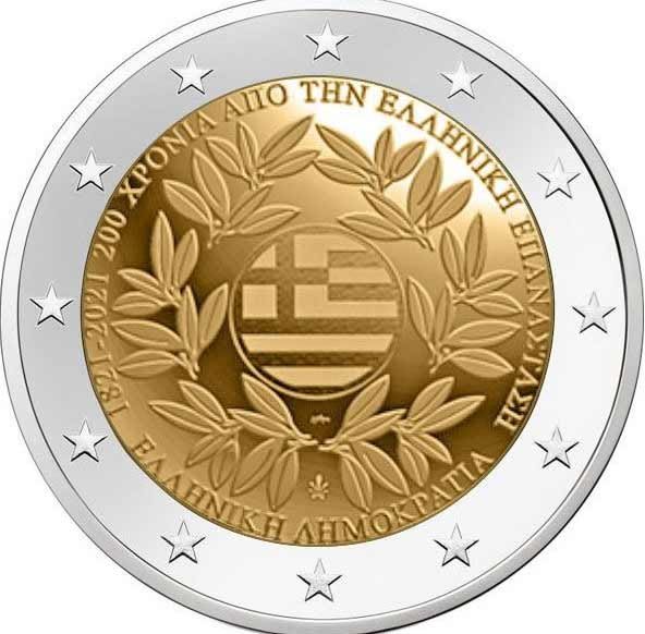 Με κλάδους δάφνης και ελληνική σημαία θα «διακοσμηθούν» 1,5 εκατομμύριο αναμνηστικά κέρματα των 2 ευρώ, με θέμα «200 χρόνια από την Ελληνική Επανάσταση», που θα εκδοθούν από το Νομισματοκοπείο και θα κυκλοφορήσουν από την Τράπεζα της Ελλάδος για τον εορτασμό της επετείου του 1821.