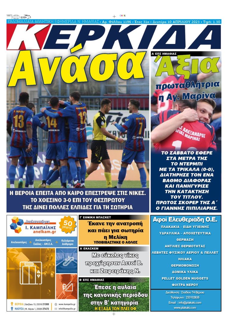 Δείτε τα πρωτοσέλιδα των εφημερίδων ΒΕΡΟΙΑ – ΚΕΡΚΙΔΑ (10/4/2023)